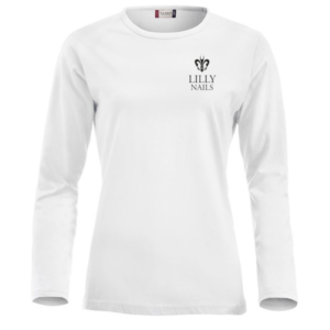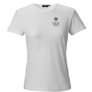 Majica iz kvalitetnega bombaža z majhnim logotipom Lily Nails na prsih in velikim logotipom na hrbtu.