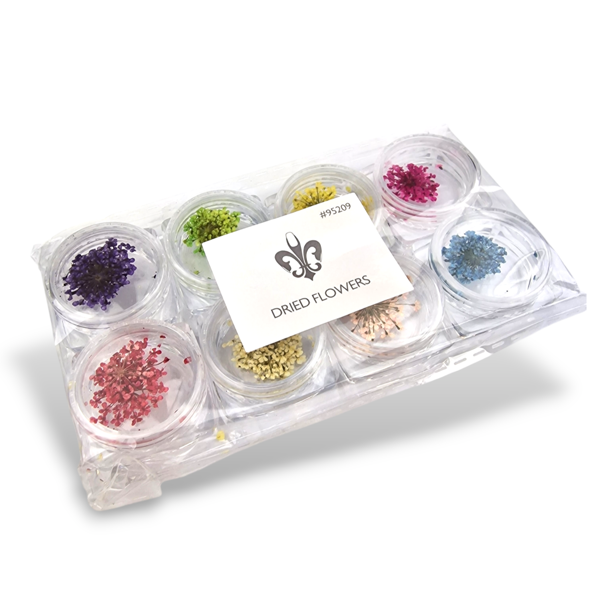 • Osušene cvjetove možete kombinirati s drugim ukrasima: šljokicama, kristali, folijom.